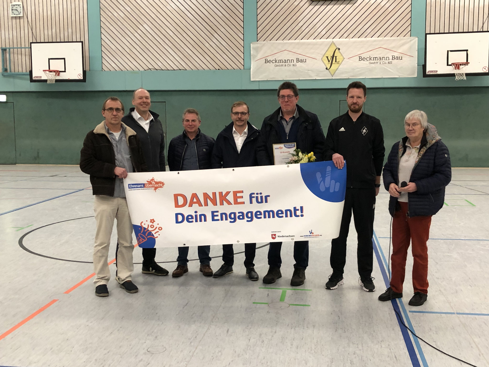 Manfred Weber vom VfL Löningen wurde für seine Tätigkeit als Hallen- und Sportplatzkoordinator durch Birgit Beintken (KSB) ausgezeichnet.